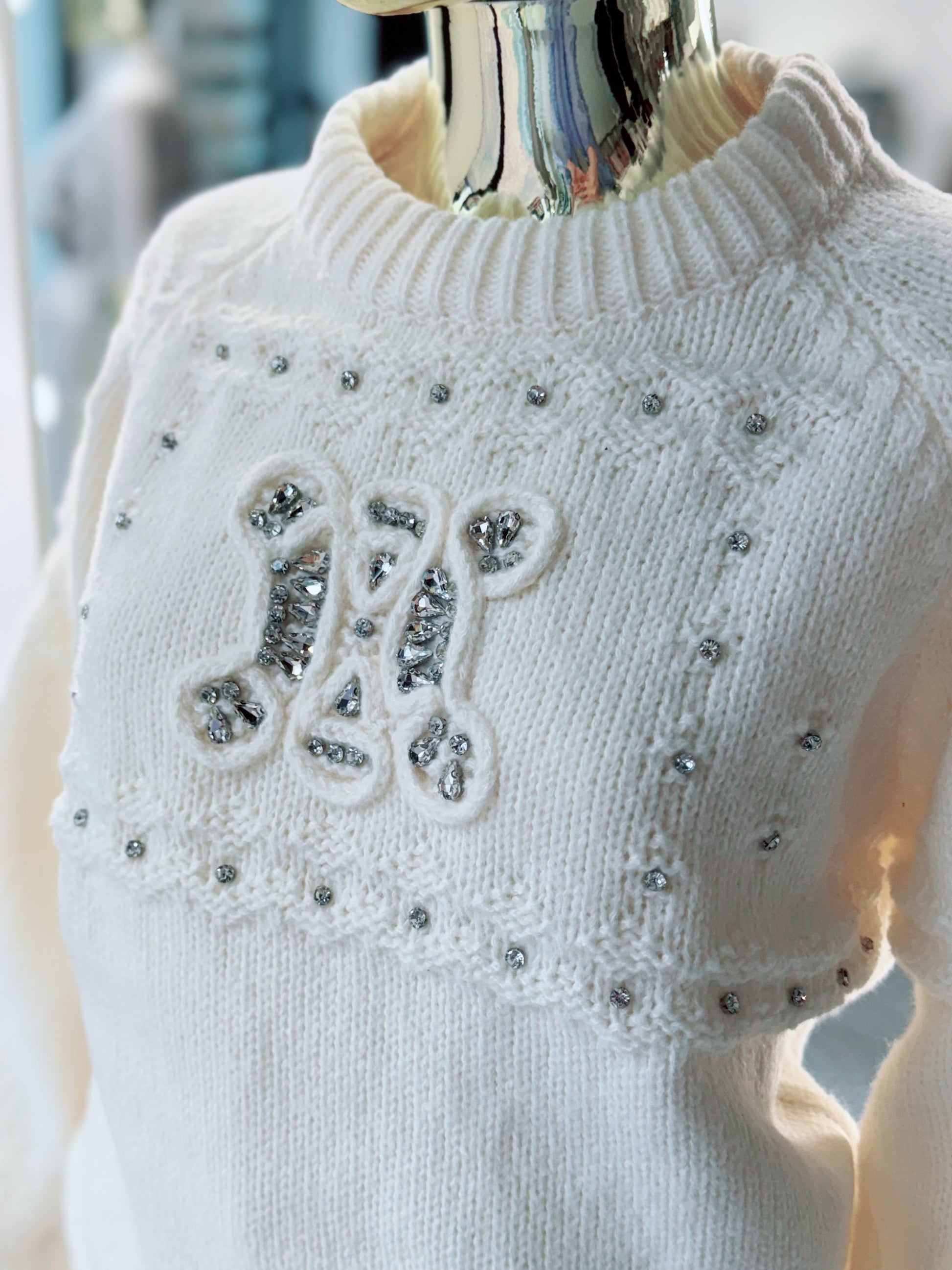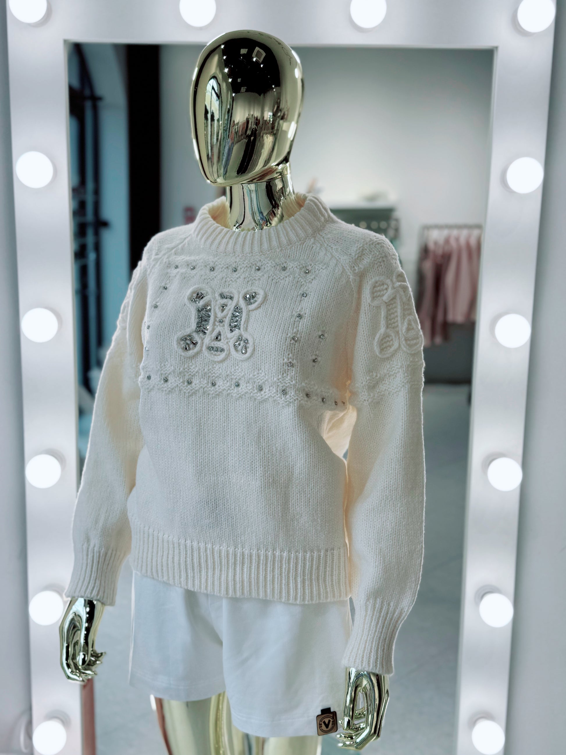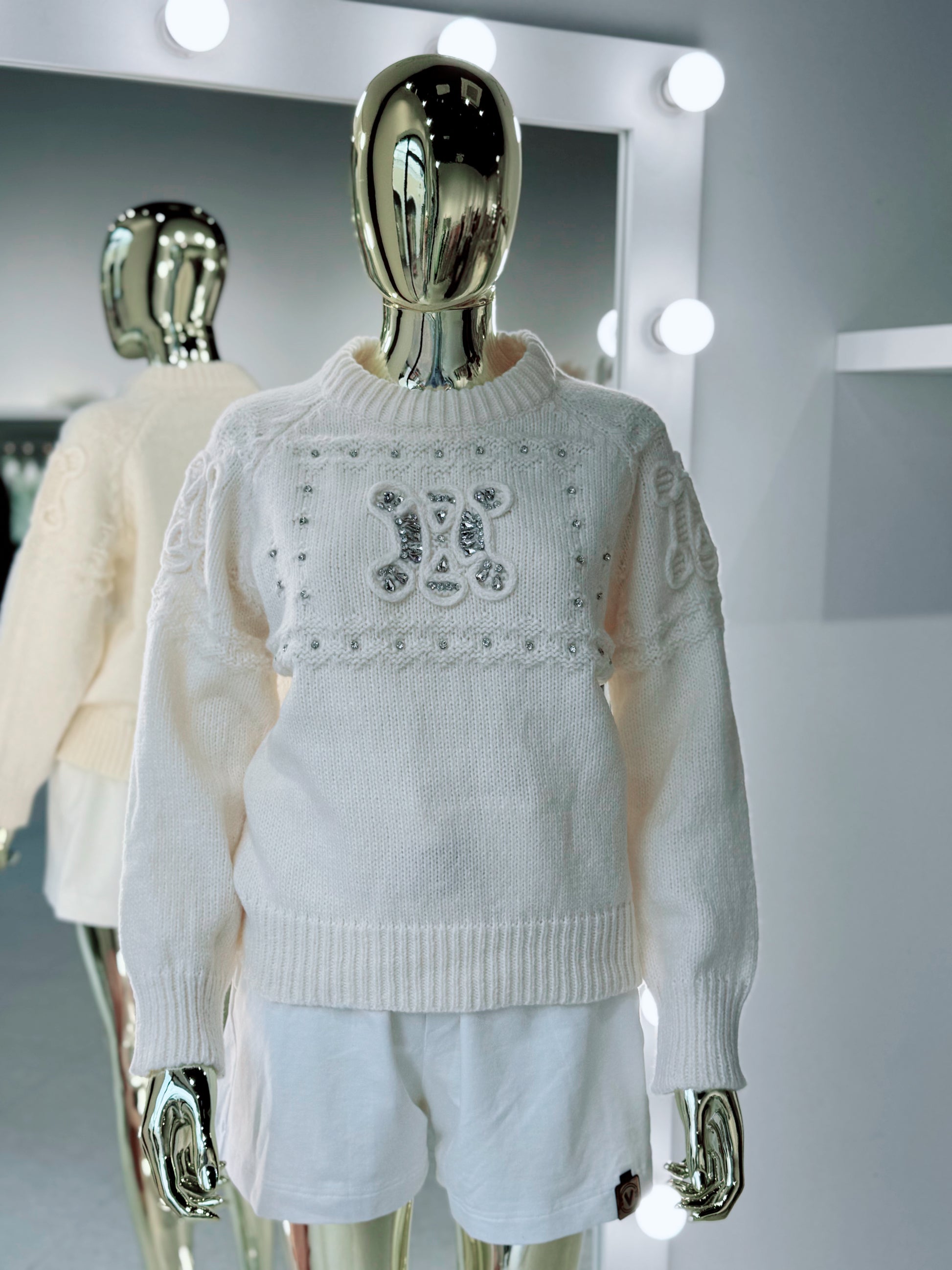 Krēmkrāsas džemperis ar kristālu akcentiem.
