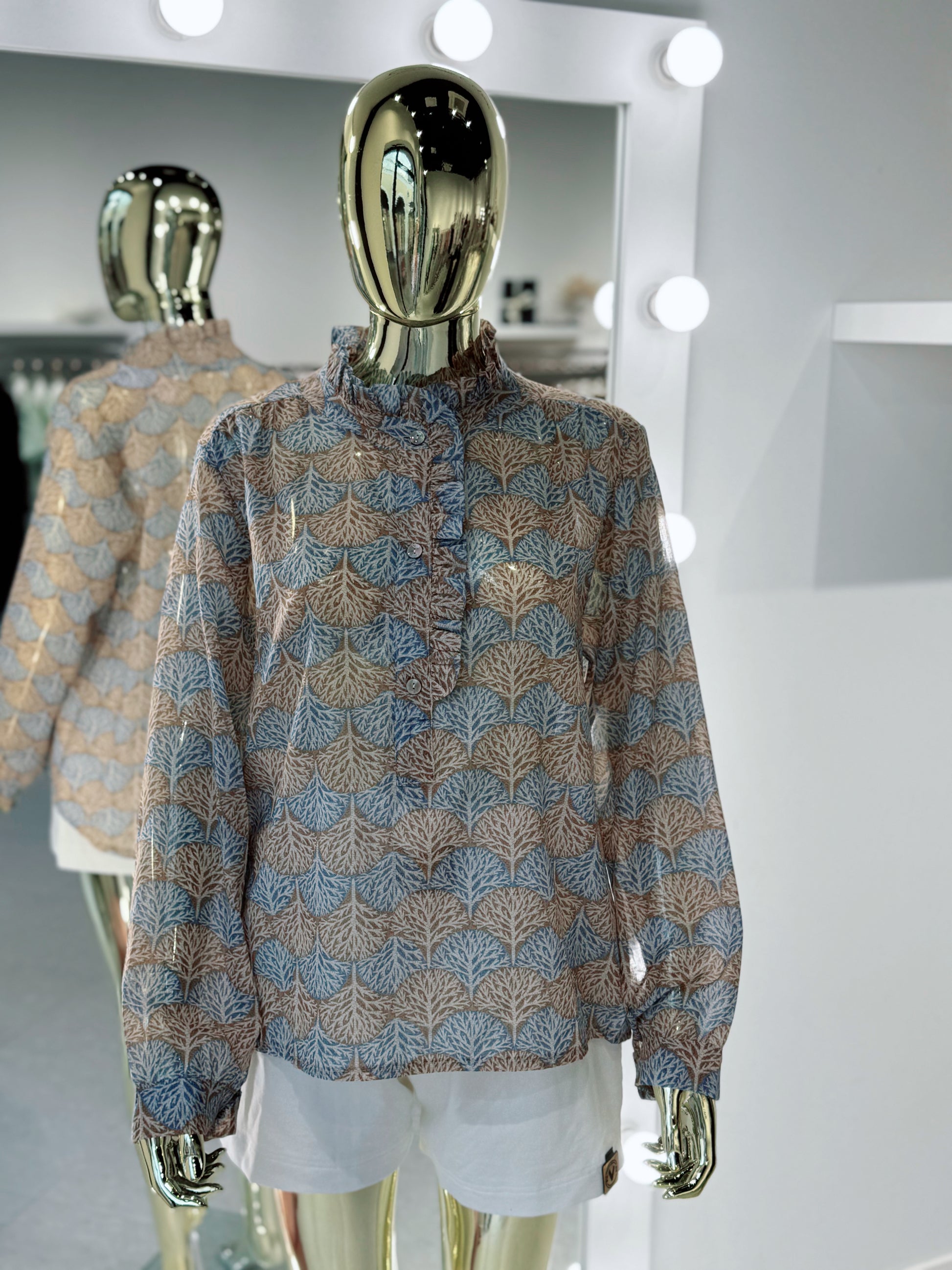 Viegla, gaisīga blūze brūnos, zilos toņos.